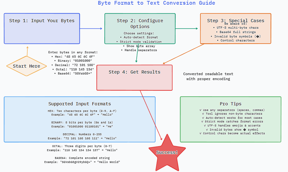 Learn how to easily convert different byte formats to readable text with our tool. Follow these simple steps to get accurate results every time.