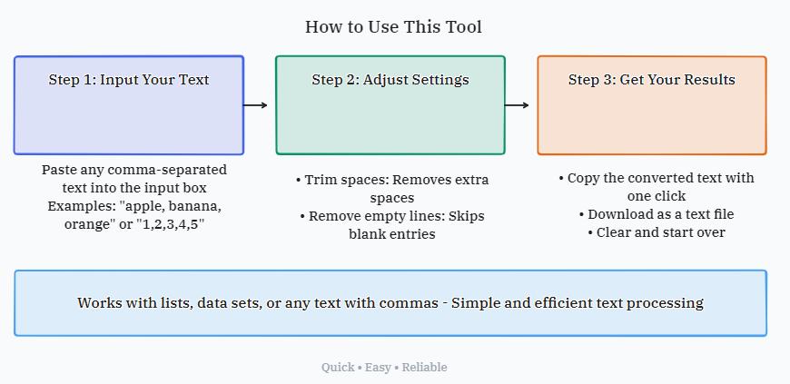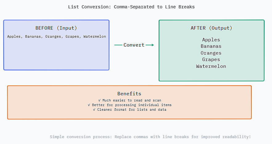 - Examples: "apple, banana, orange" or "1,2,3,4,5"