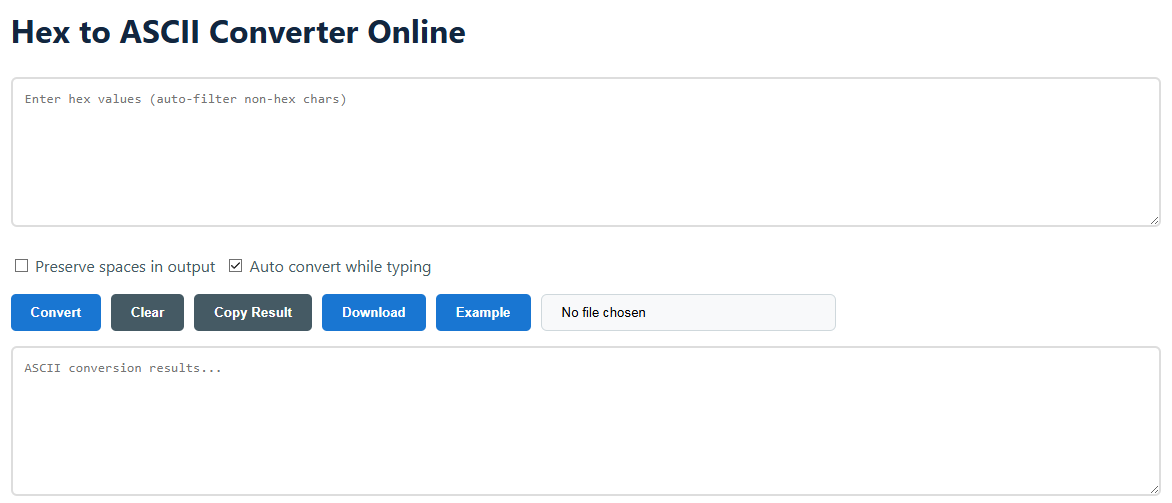 This hex-to-ASCII converter is built for flexibility and ease of use, whether you’re working on a quick debug task or processing large batches of data. Below are all the practical features designed to save you time and avoid frustration.