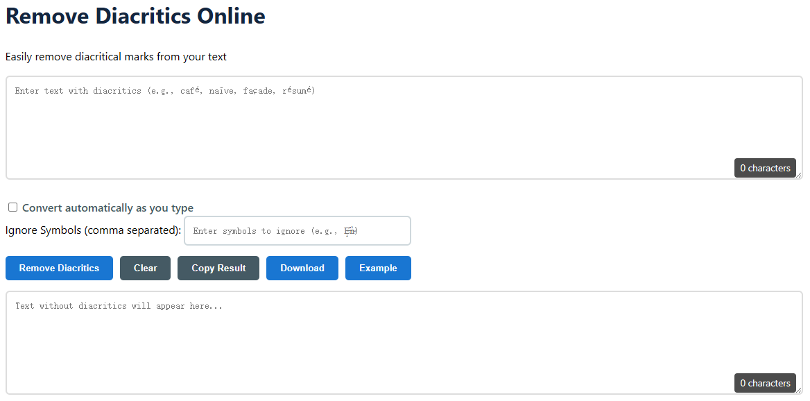 Getting rid of those tricky diacritics just got easier! Whether you're working with French accents, German umlauts, or Spanish tildes, this tool makes the process simple and intuitive. Just follow these steps to clean up your text in seconds.