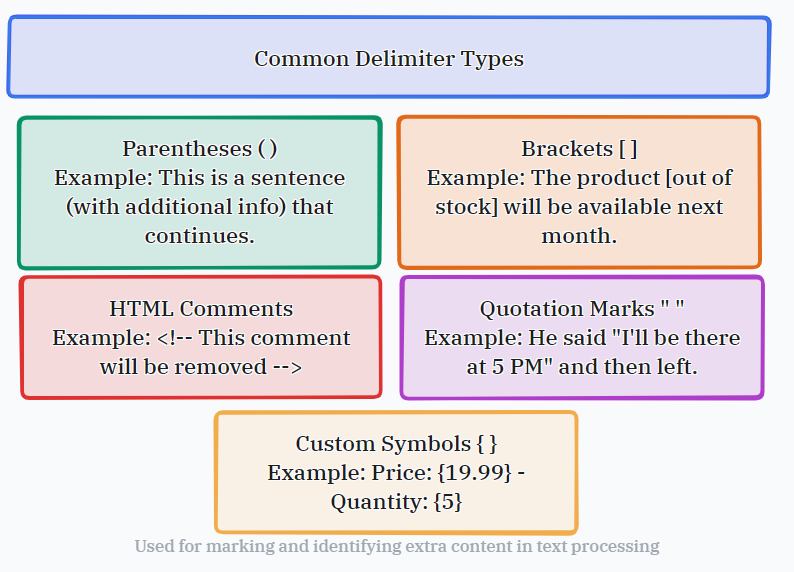 Most documents use standard symbols to mark extra content. Here are the most common ones people work with when cleaning text: