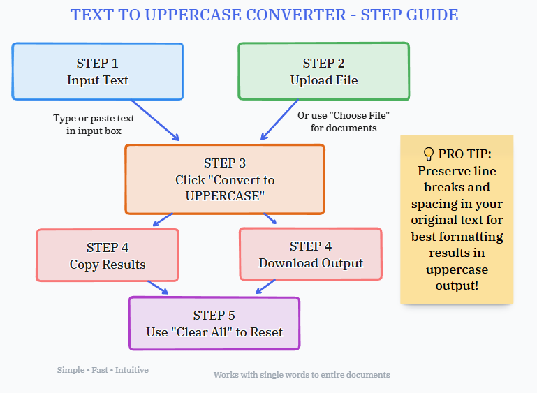 Converting your text to uppercase takes just seconds with our intuitive tool. Follow these simple steps to transform your content.