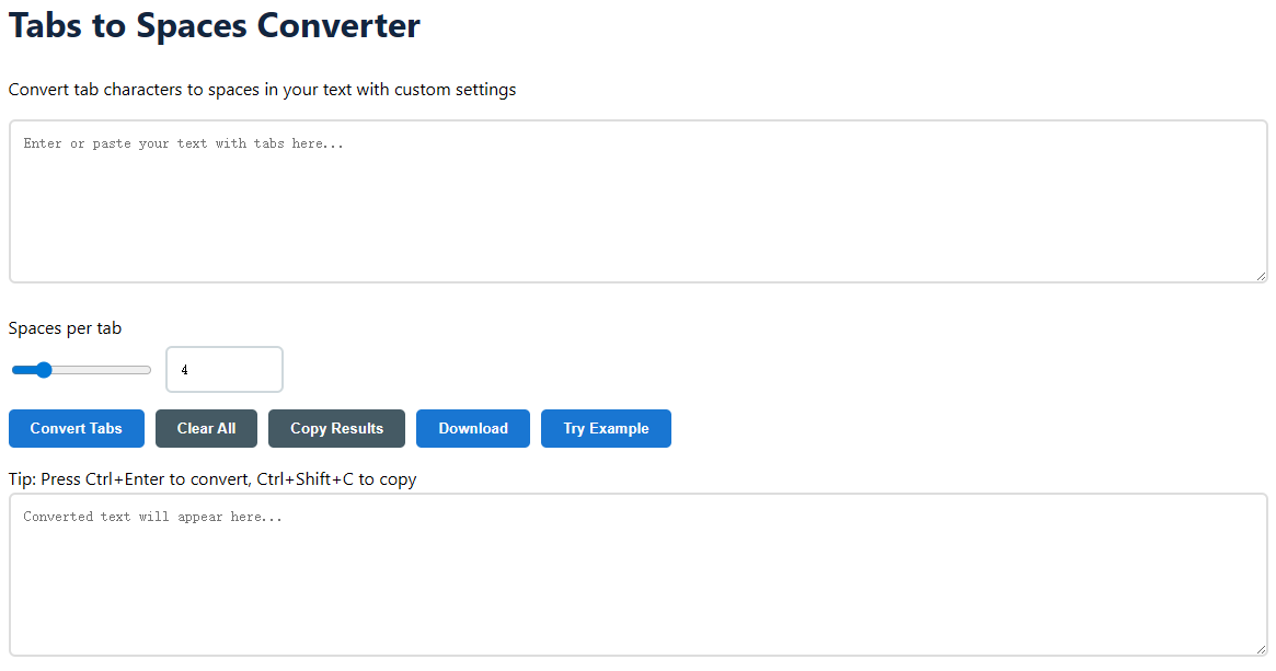 Our tabs to spaces converter makes it easy to transform tab characters into spaces in any text document. Whether you're working with code, data files, or formatted text, this tool helps ensure consistent indentation and compatibility across different platforms.